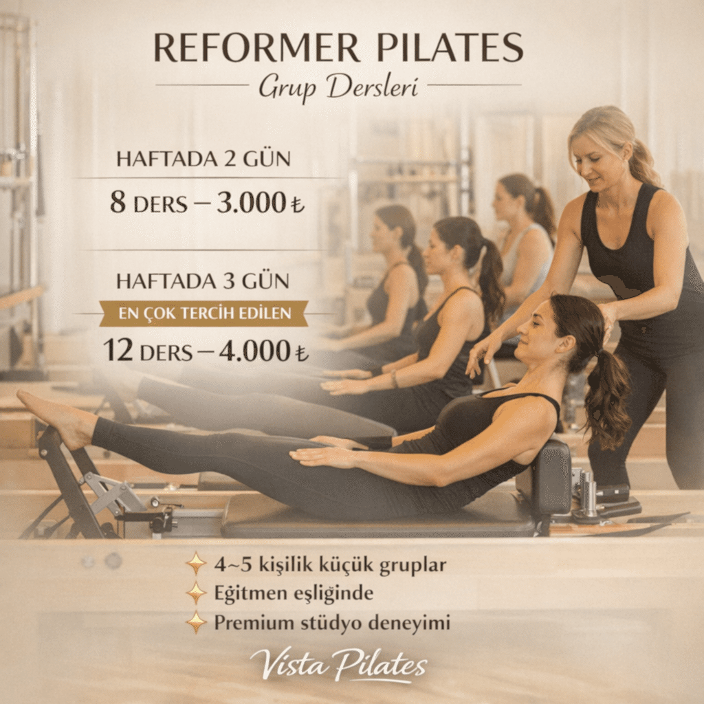 Küçük grup reformer pilates, 4 -5 kişilik sınırlı katılımcı sayısıyla yapılan, bireysel ilginin ön planda olduğu özel bir ders formatıdır. Grup enerjisiyle motive ederken, kişiye özel yaklaşımı da korur.